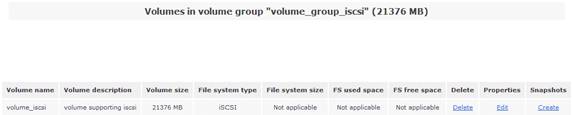 在右側的“Volumes section”區(qū)域選擇“Manage Volumes”選項,可以看到剛剛創(chuàng)建的 iSCSI 卷信息。如圖